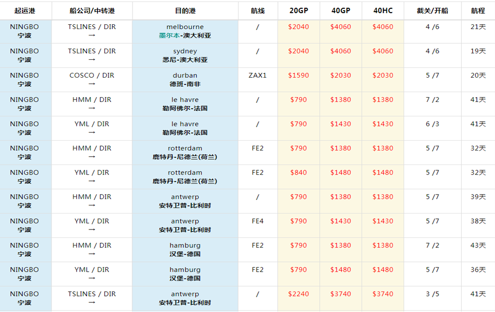 5、宁波港起运国际海运整柜报价