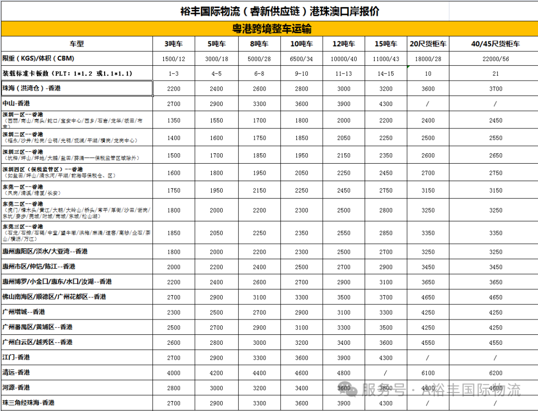 2、香港跨境整车运输报价
