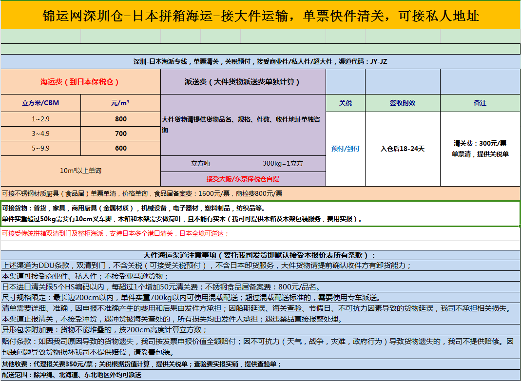 3、深圳-日本大件海运经济单票清特价更新