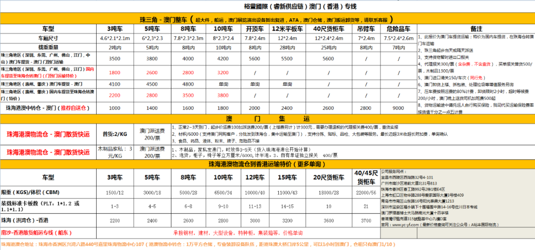 1、澳门专线陆运/香港专线海运报价