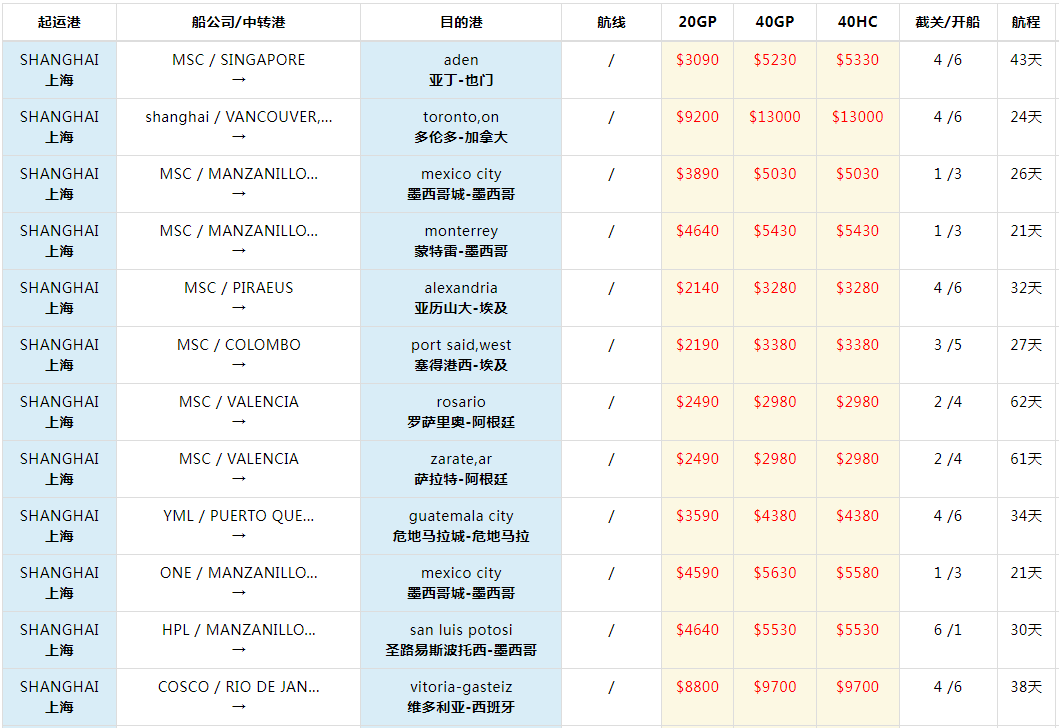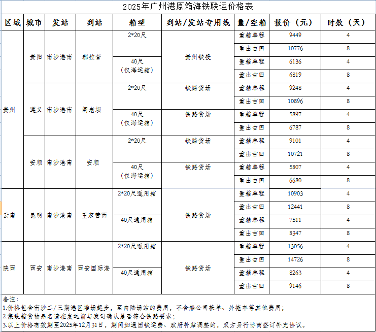 4、广州南沙港南站至贵州/云南省各站点海铁联运价格表