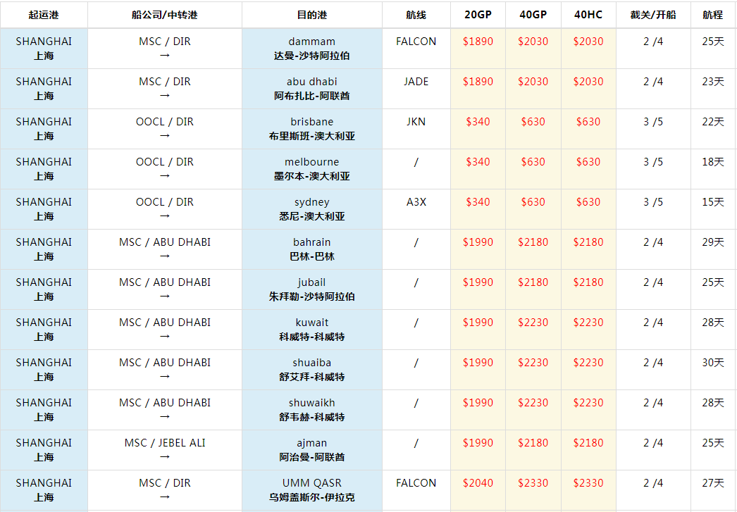 4、广州南沙港南站至湖北省各站点海铁联运价格表